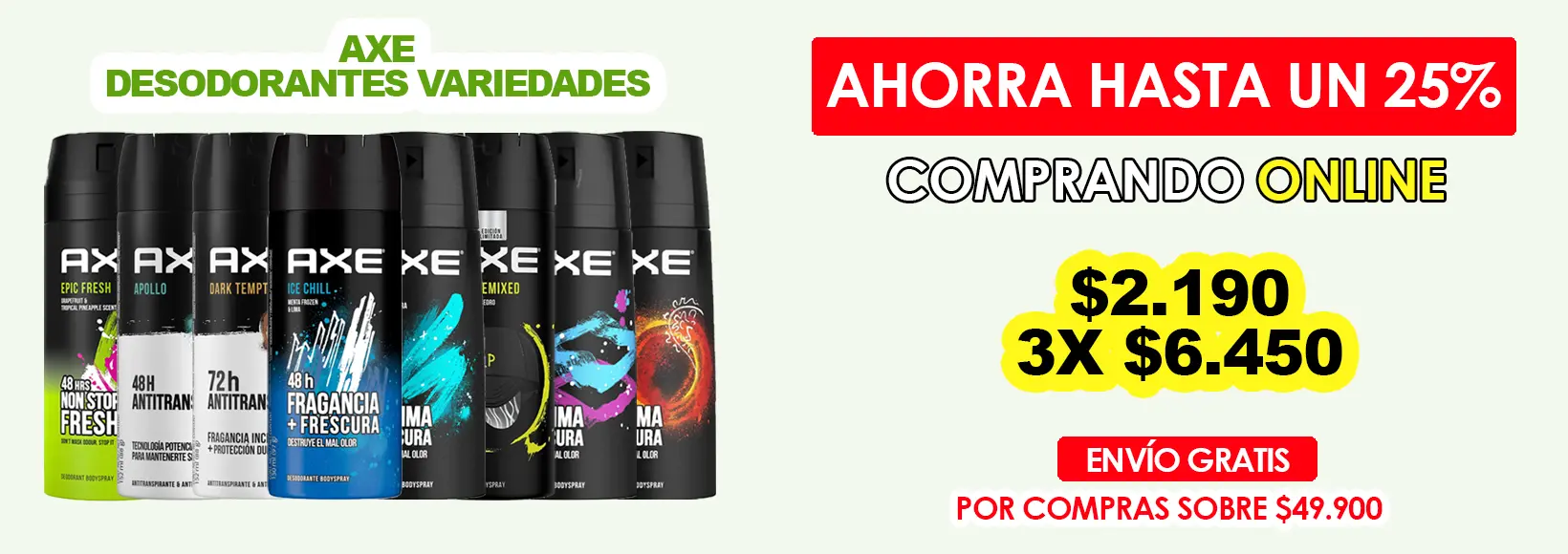 Desodorantes axe, rexona, dove,nivea, shampoo, gillette